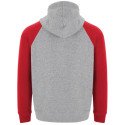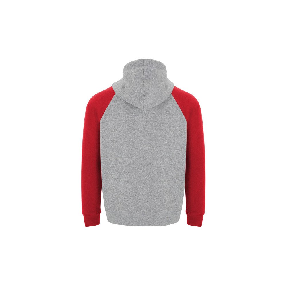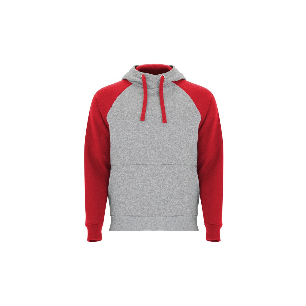 Two-tone unisex hoodie. Crossover hood with metal eyelets. Contrast inner hood, drawstring and raglan sleeves. Kangaroo pocket. 1X1 elastane rib knit cuffs and hem.