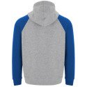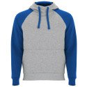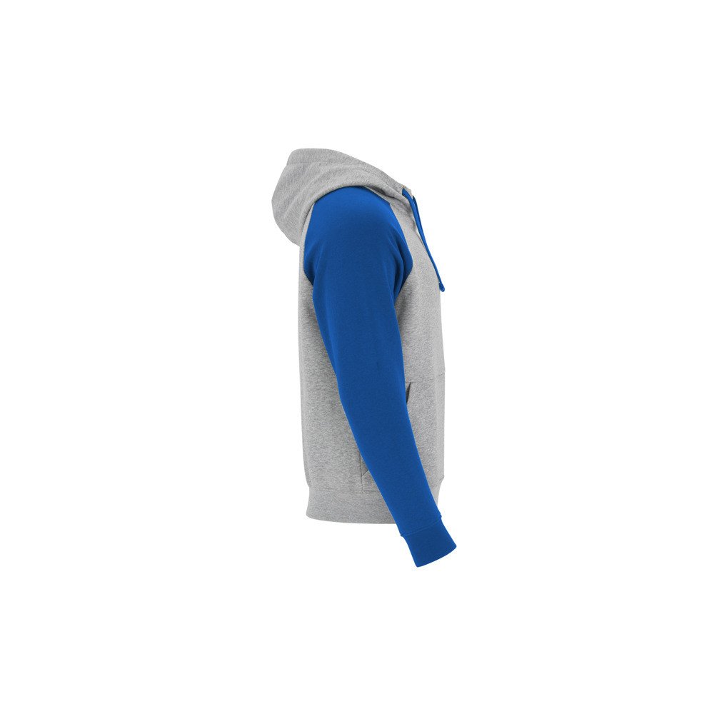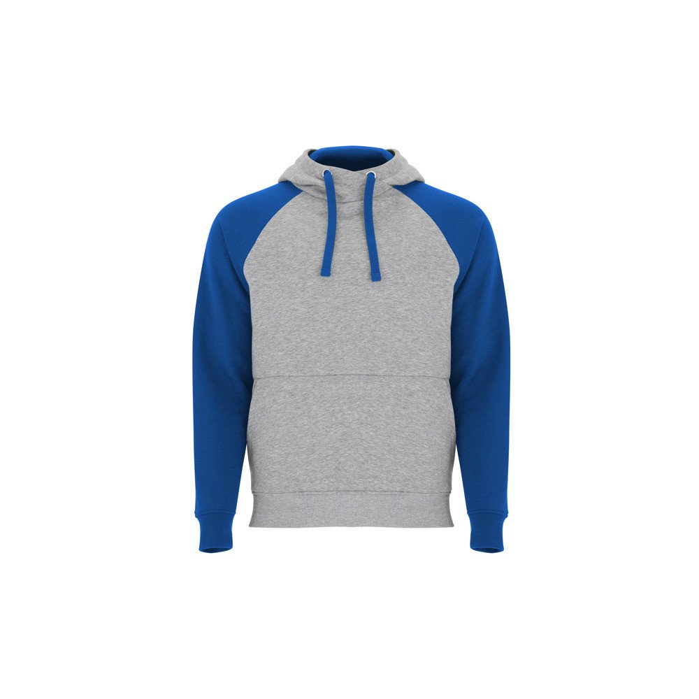 Two-tone unisex hoodie. Crossover hood with metal eyelets. Contrast inner hood, drawstring and raglan sleeves. Kangaroo pocket. 1X1 elastane rib knit cuffs and hem.