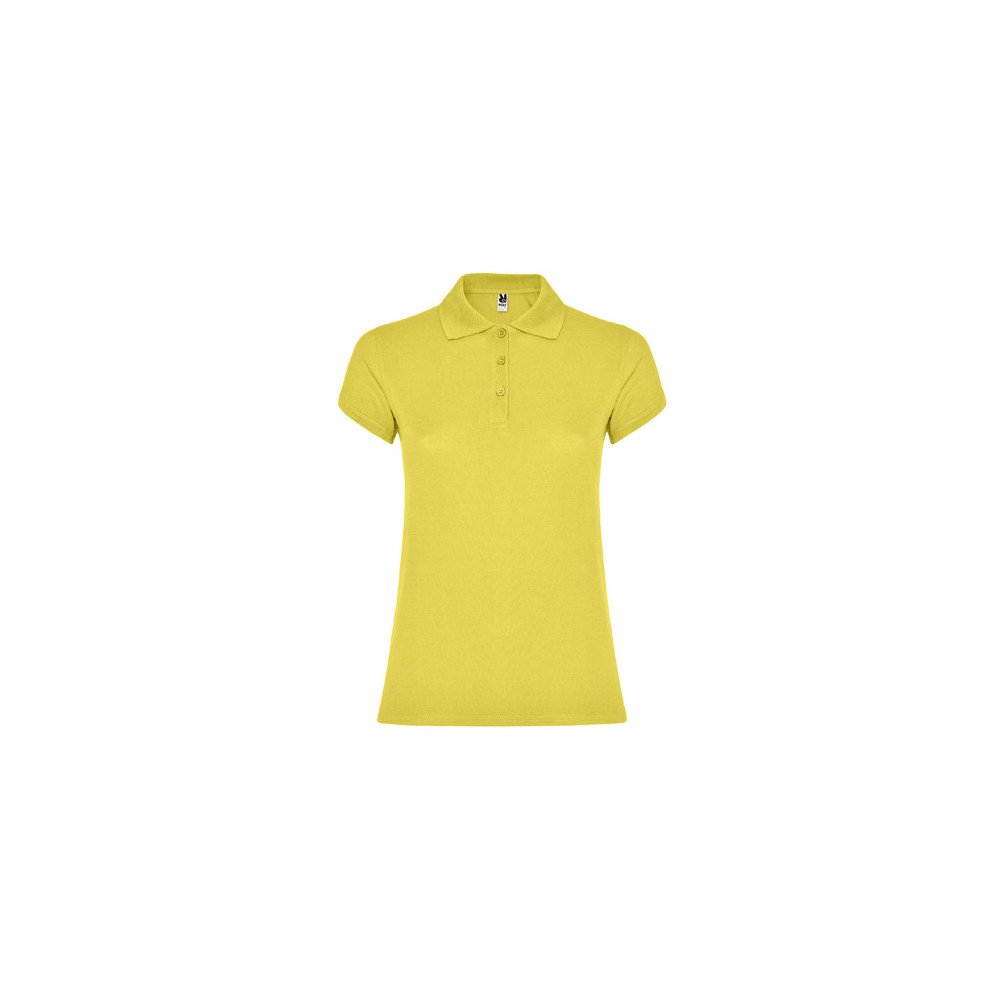 Short-sleeve polo shirt for women. Reinforced covered seams in interior collar. 1x1 ribbed collar and cuffs. Side seams and fitted cut. Narrow 3-button placket. Side slits.