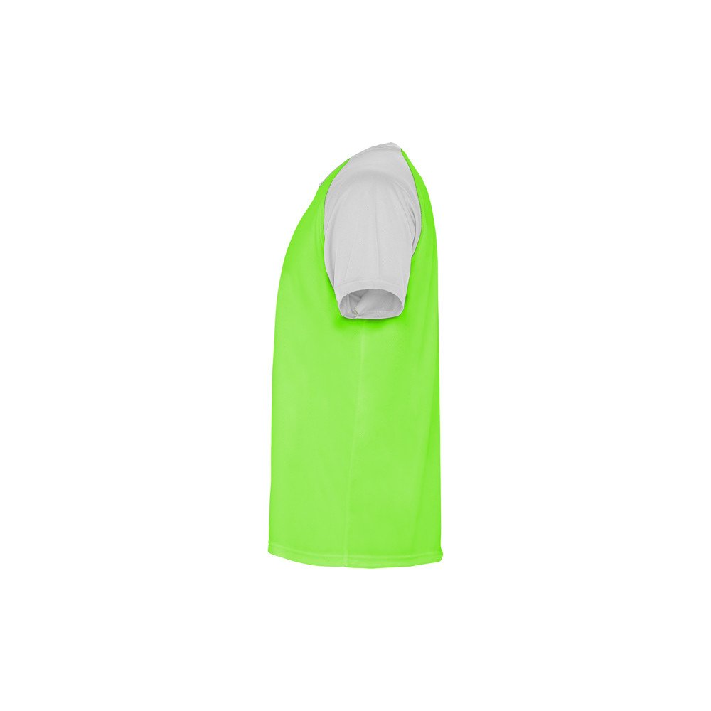 Lühikeste raglaanvarrukate ja kontrastsete varrukatega sport-T-särk. Ümar kaelus tugevdatud peidetud õmblustega.