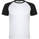 Sportiniai marškinėliai trumpomis raglano rankovėmis ir kontrastingomis rankovėmis. Apvali iškirptė su sustiprintomis paslėptomis siūlėmis.