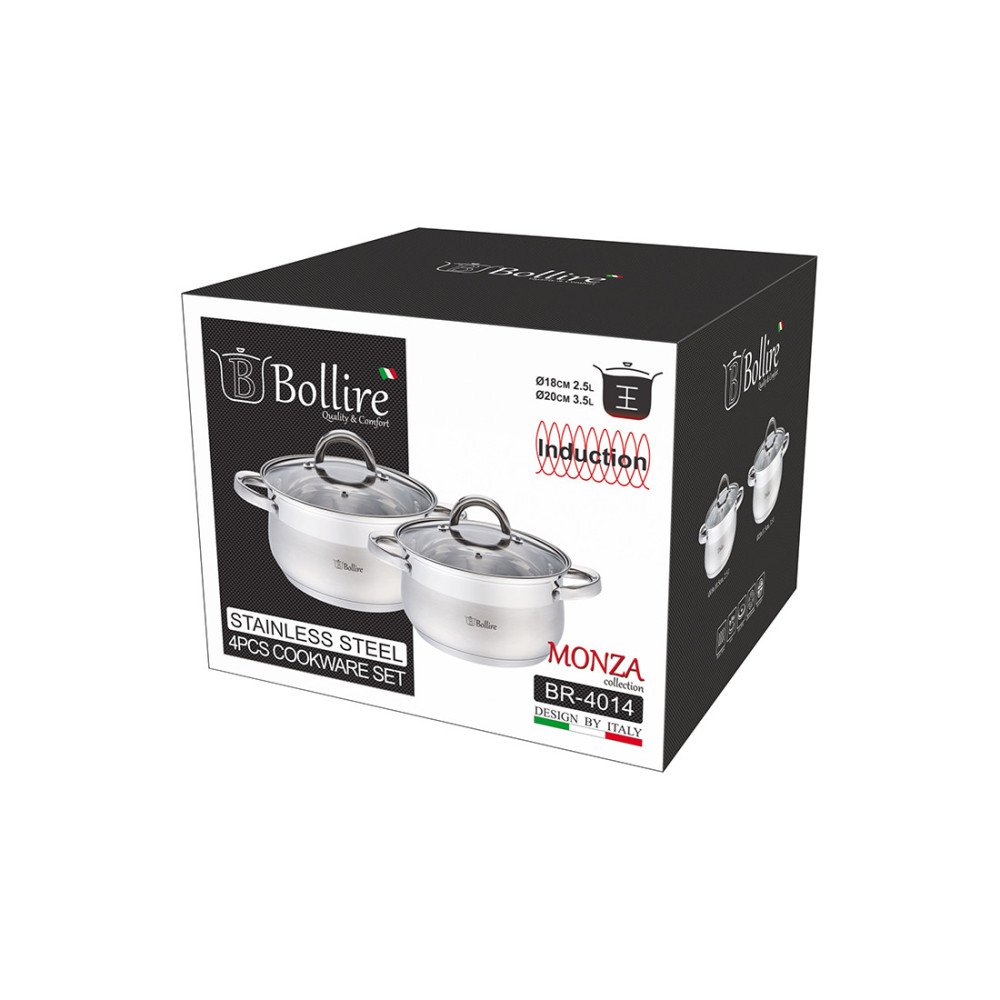 Izmērs | Kastrolis 1,8l 16x9,5cm, kastrolis 2,5l 18x10,5cm, kastrolis 3l 20x11,5cm, kastrolis 4,4l 22x12,5cm | ||