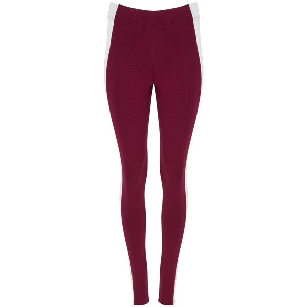 Длинные женские спортивные леггинсы с эластичным поясом и контрастными полосками по бокам.